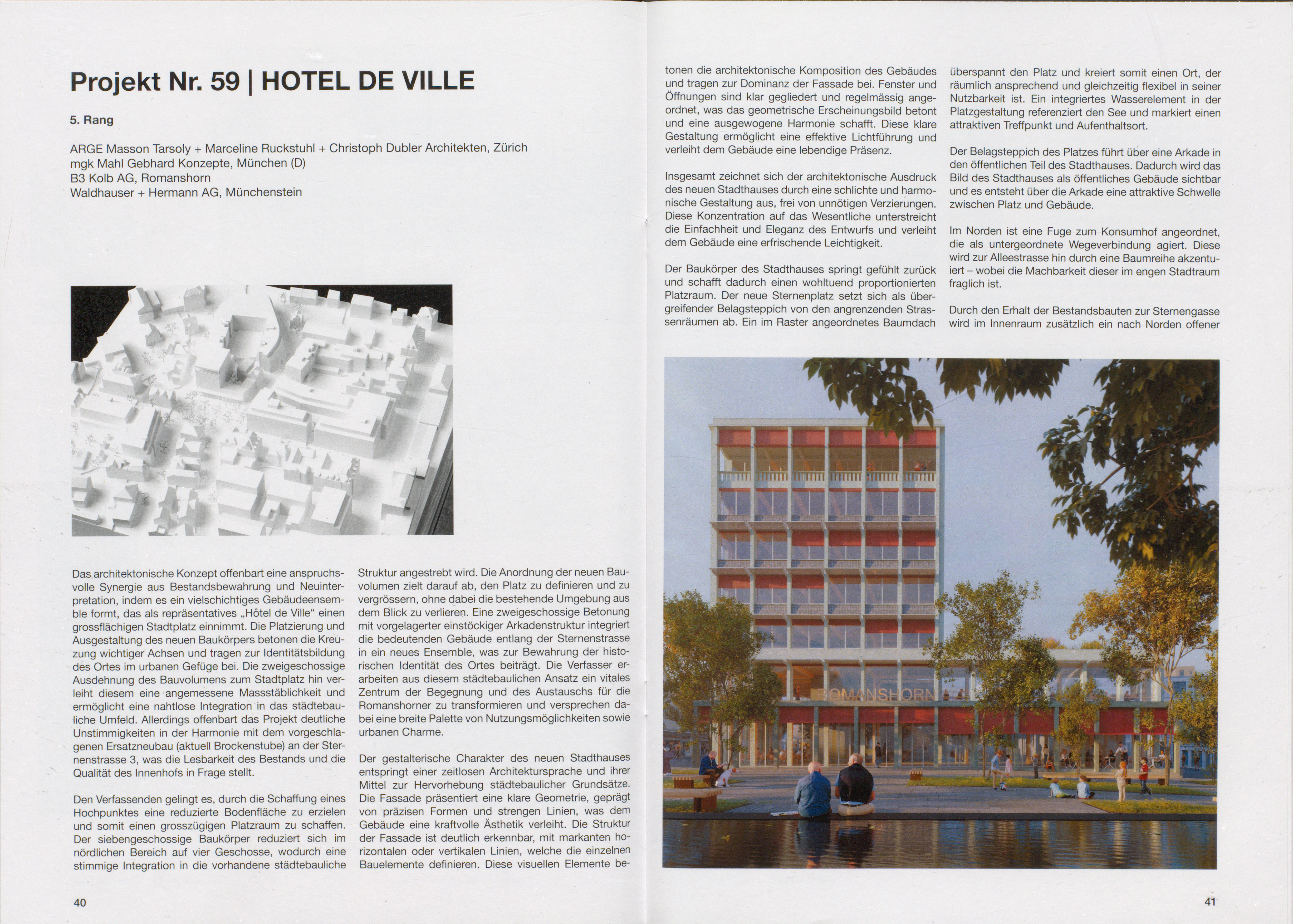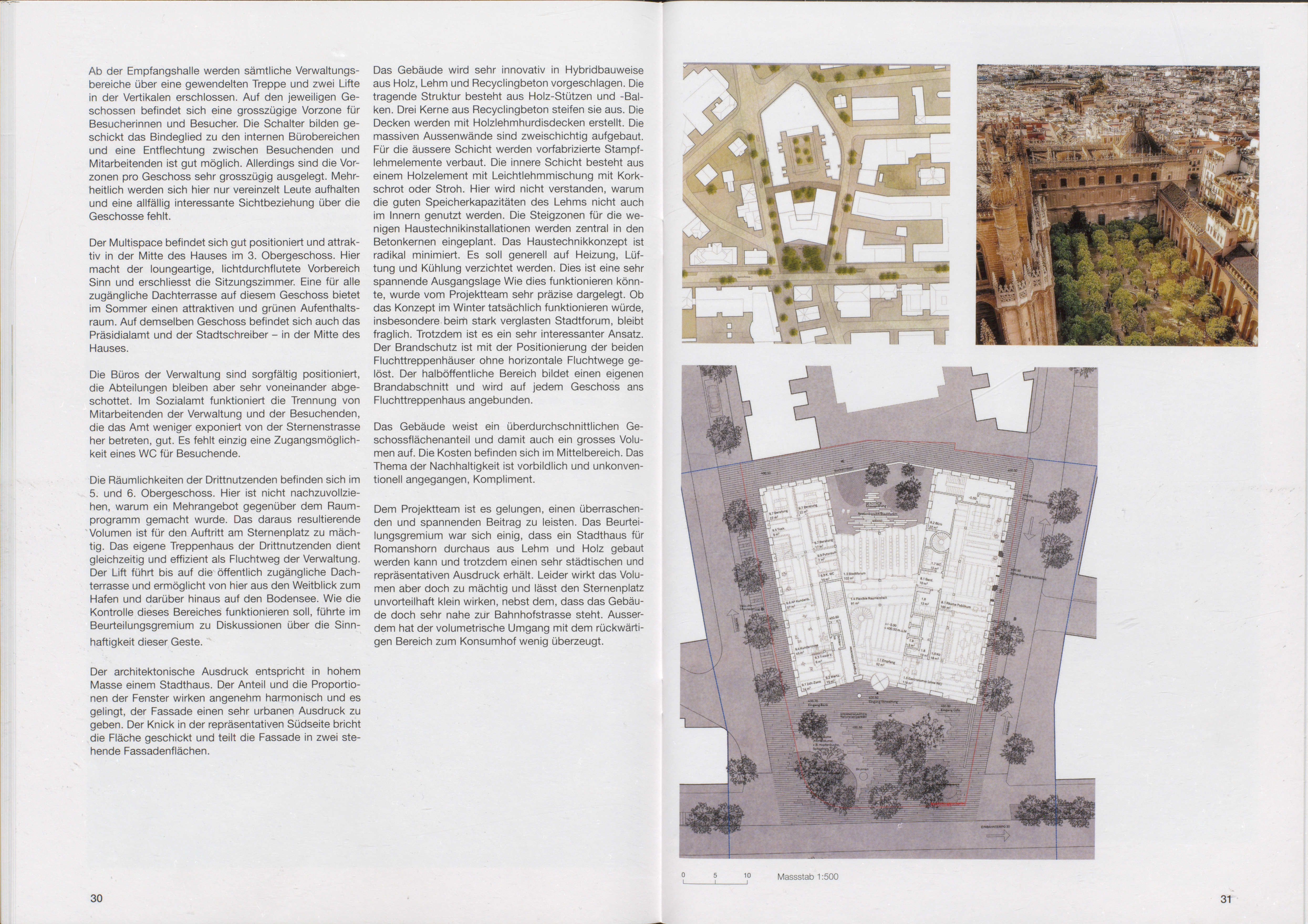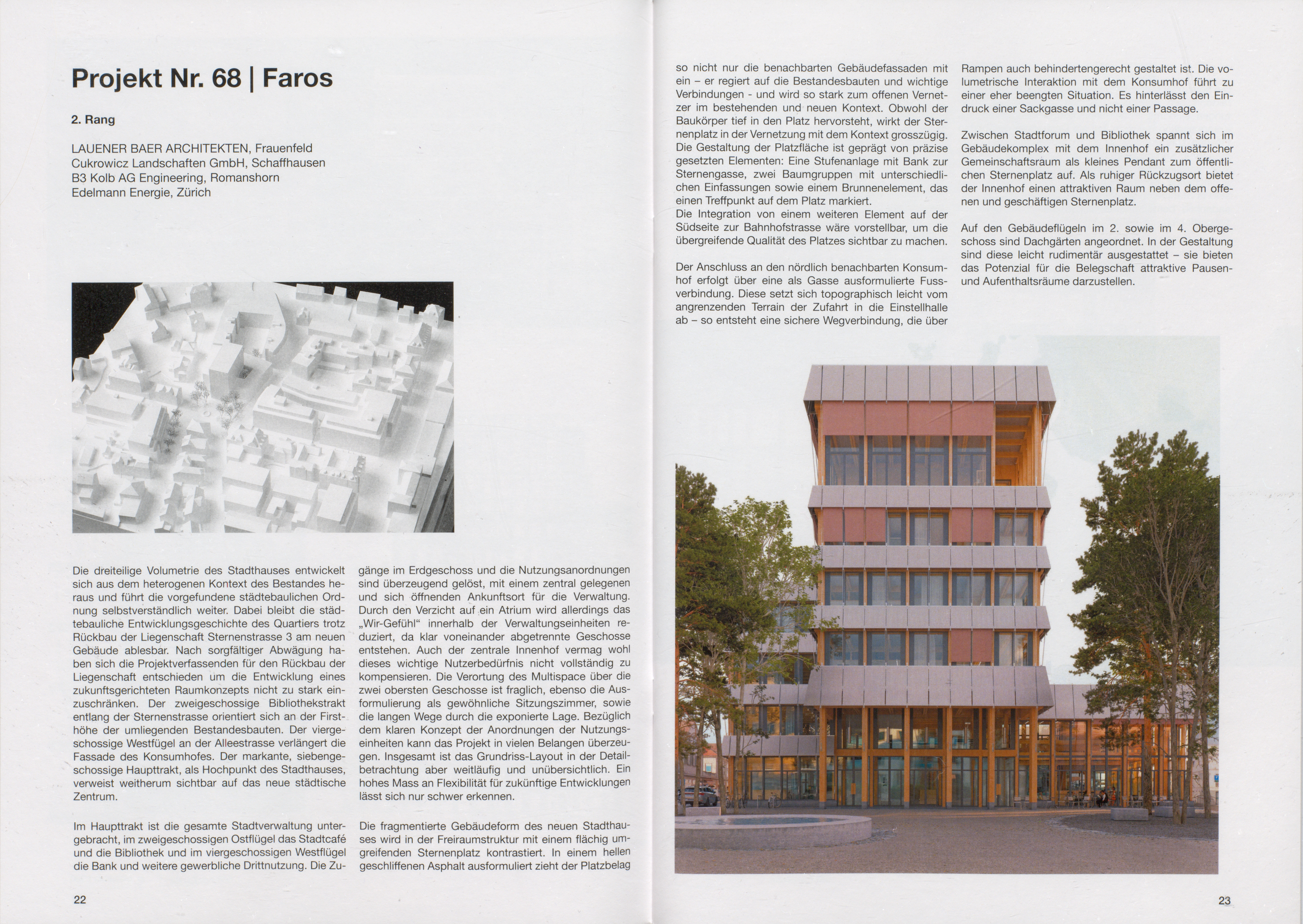 Als ersten Auftrag in Zusammenarbeit mit dem internen Architekten bei Intosens entstand ein Layout für den Bericht des Architekturwettbewerbs um das Stadthaus Romanshorn.
